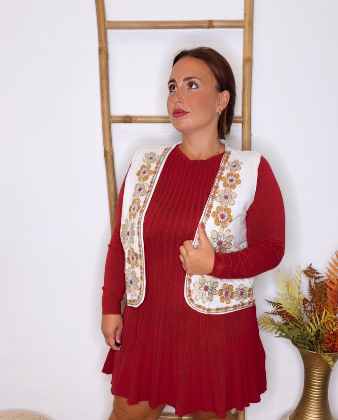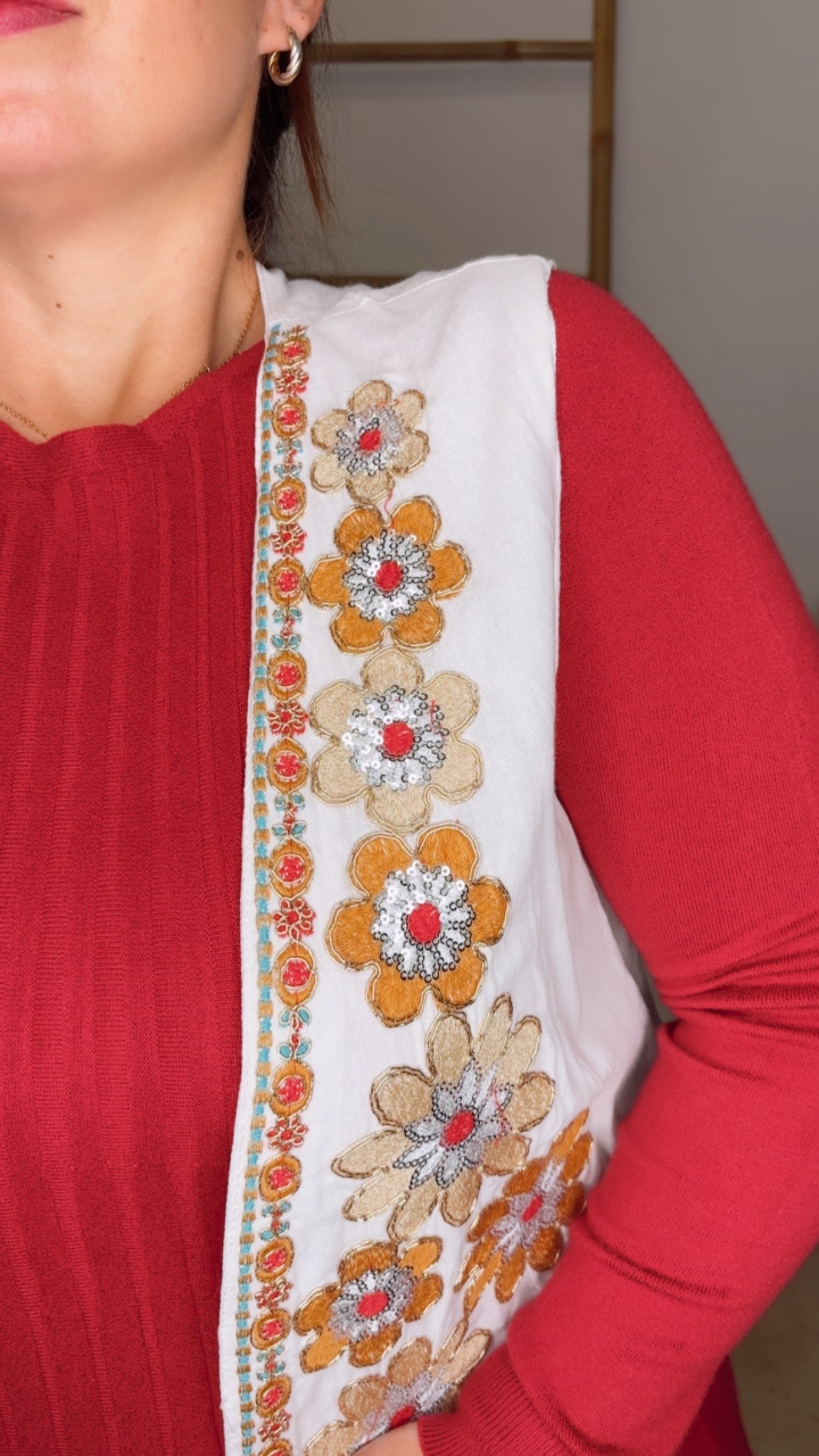Chaleco con flores bordadas.