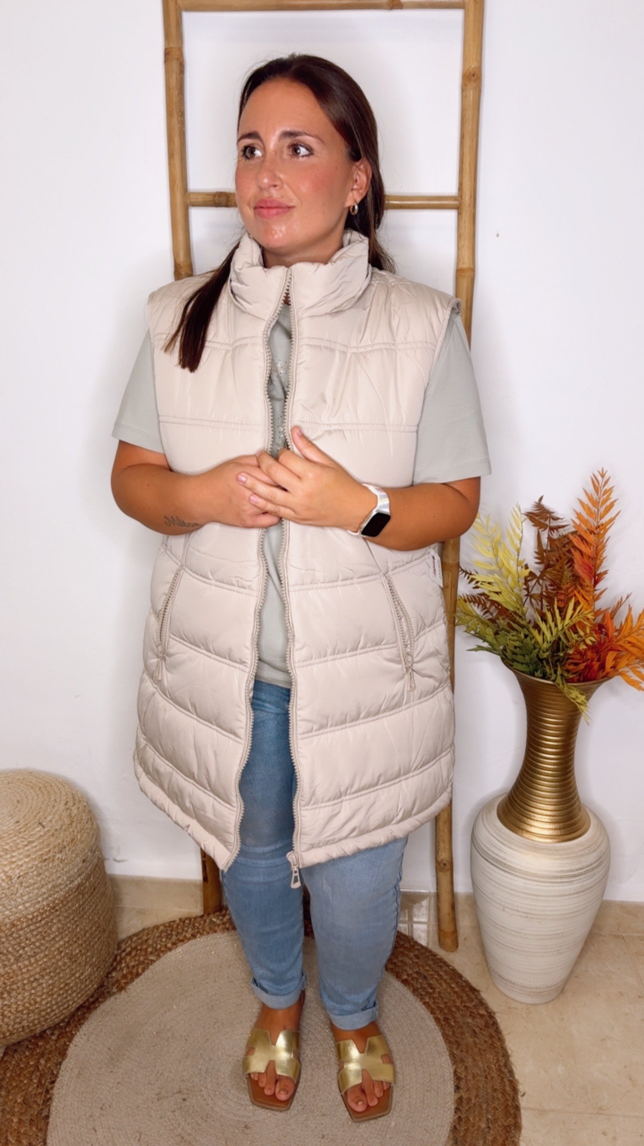 Chaleco acolchado de color beige.